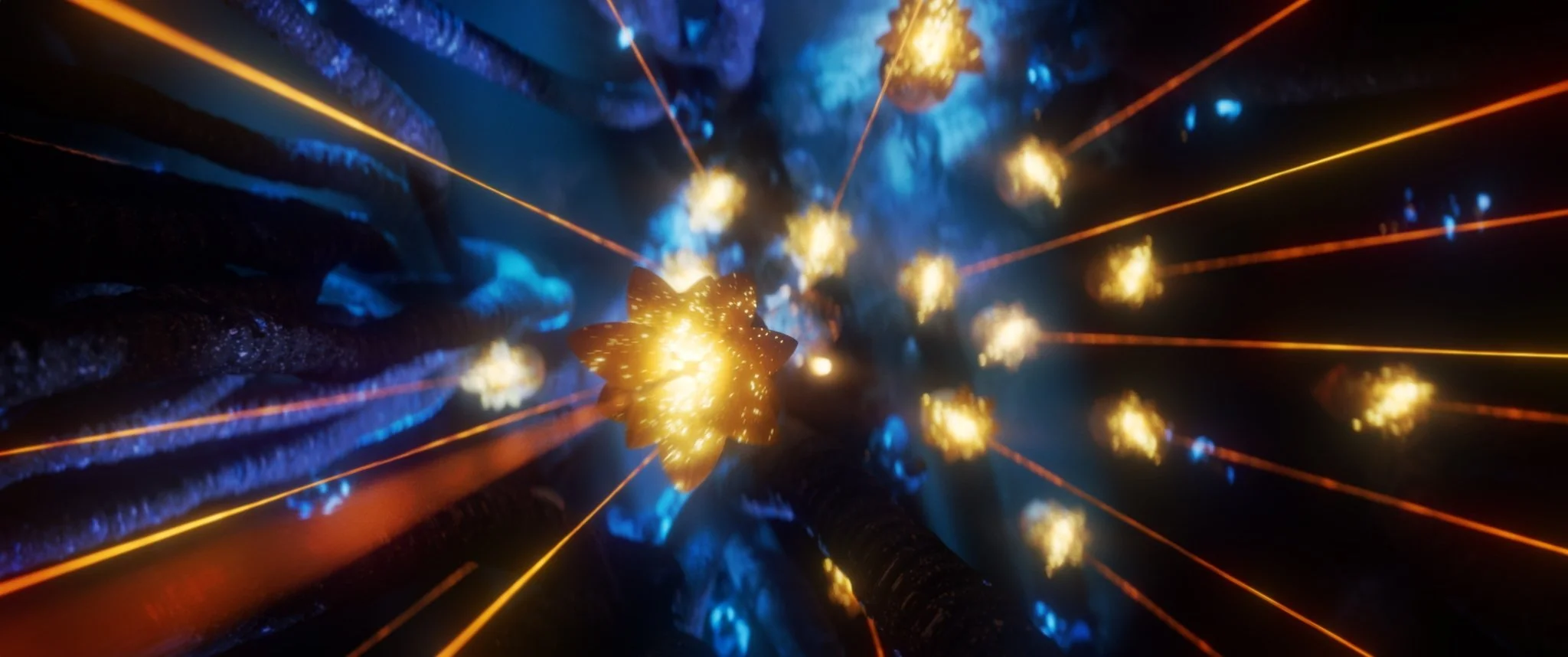 Outside of the character's simulated elements, there were FLIP simulations I built for the ocean sequences, particle simulations for dust and plankton in the water, rigid body simulations for falling rocks and fractured sinkholes opening up, pyro simulations for smoke and dust, and customized vellum solvers to help animate leaves into specific positions while still being affected by natural forces. Houdini is a program I have used for years at this point, and it really is the key piece of software that makes a single person creating something like this film possible. My initial goal in starting this short was to create it fully in Houdini - something it is more than capable of. The USD integration for creating, placing, and rendering assets is mind boggling. The character tools for rigging and animation really do seem unmatched. However, when I create projects like this, I step away from paid projects and 'pay my own salary' for however long it takes, in this case, five months. As much as I wanted to stick to my initial goal, the time that I calculated it would take me to completely learn the new systems of KineFX, APEX, and Solaris made the cost of both learning and completing the project out of reach. I have used Cinema 4D for over almost 15 years now, and although, (no offense intended) I find it's tools for character work and large scale scene rendering vastly inferior to other tools on the market, it is the program I have the most experience with and the one that enabled me to complete this project in the time that I had available to me.