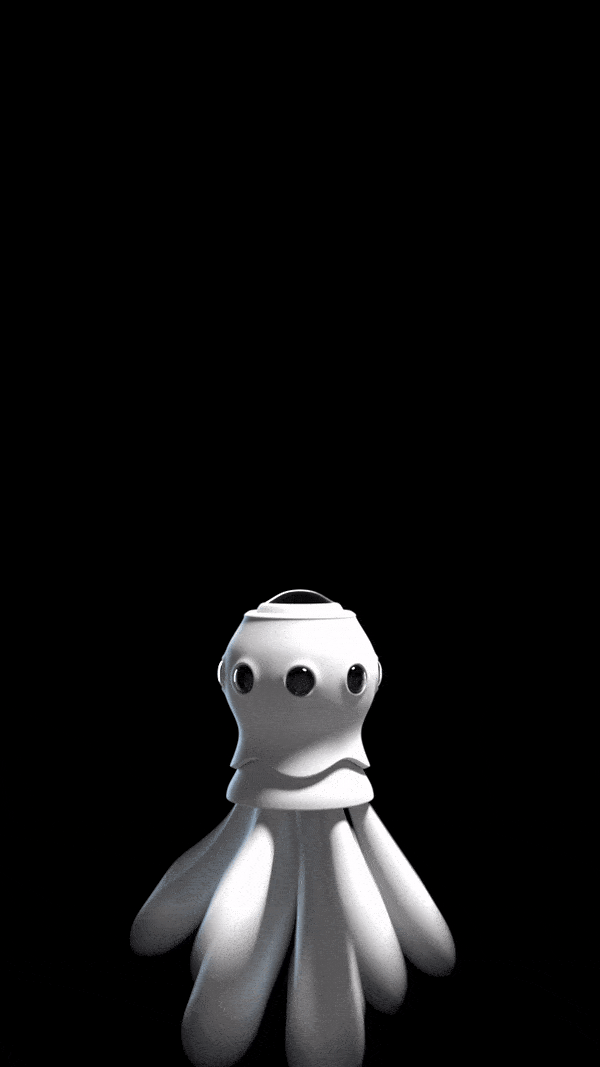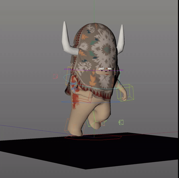 With my short films, it can often be challenging to figure out whether the full story or the character designs come first. Oftentimes, the story helps to inform what design limitations the character will have, and in other cases, like this one, certain mechanics of the character inform important story points. The main character went through many iterations (as can be seen in a few of the original concepts above) but landed quite early in the process on a biped with a hood and horns that glow. As an independent animator, I am always looking for ways to save on time and animating hours without losing the appeal of the characters themselves. Characters in blockbuster feature films will have thousands of controls to adjust the most minute of details in their faces and hands. In 'Next Flight Home' for example, each bird had seven controls. The goal of having a simple rigging and animation job is an early consideration baked into the identity of the character from the start so that it doesn't feel like we are cutting corners in the service of saving time down the line. For this film, the character has little blocks for feet necessitating very little animation in articulation or rotation. His hands have two fingers and a thumb each, the minimum needed to point, open, and close a hand. And most importantly, the simulated element, his hood, provides a large portion of the movement. This would allow me to create a pipeline for simulation and art direct elements of how it moved while allowing the computer to create natural and complex movement on its own. Maximum output for minimum input without losing sight of the heart of the character.