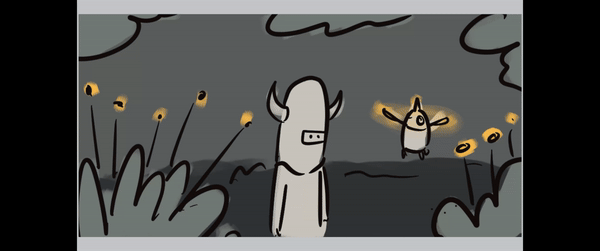 Although this captured my feelings at the time, it missed the bigger point - a more optimistic note. I was so trapped in a cycle of depression and anxiety that I couldn't see what the wider story was - that is where my good friend, collaborator, and creative partner on this film came in. Before Jordan was a co-writer on this film, he was a friend to me, helping me see through what felt like an all engulfing darkness. Fast forward to a year later and my wife and I had moved back to France, I had started Ambient Press and was creating stories again that I could be proud of, and we had landed, seemingly by pure luck, in a community of wonderful people in a town we love. Jordan and I began having monthly meetings where we would discuss this project. Ever since 'Next Flight Home', we had been wanting to work together on an animation from start to finish, and it quickly became evident that this project was the one to pursue. With Jordan's contribution, we were able to land on the story of finding community in a broader journey. The core of the story was finally discovered, and we could begin working on the more detailed outline, character designs, and music explorations.